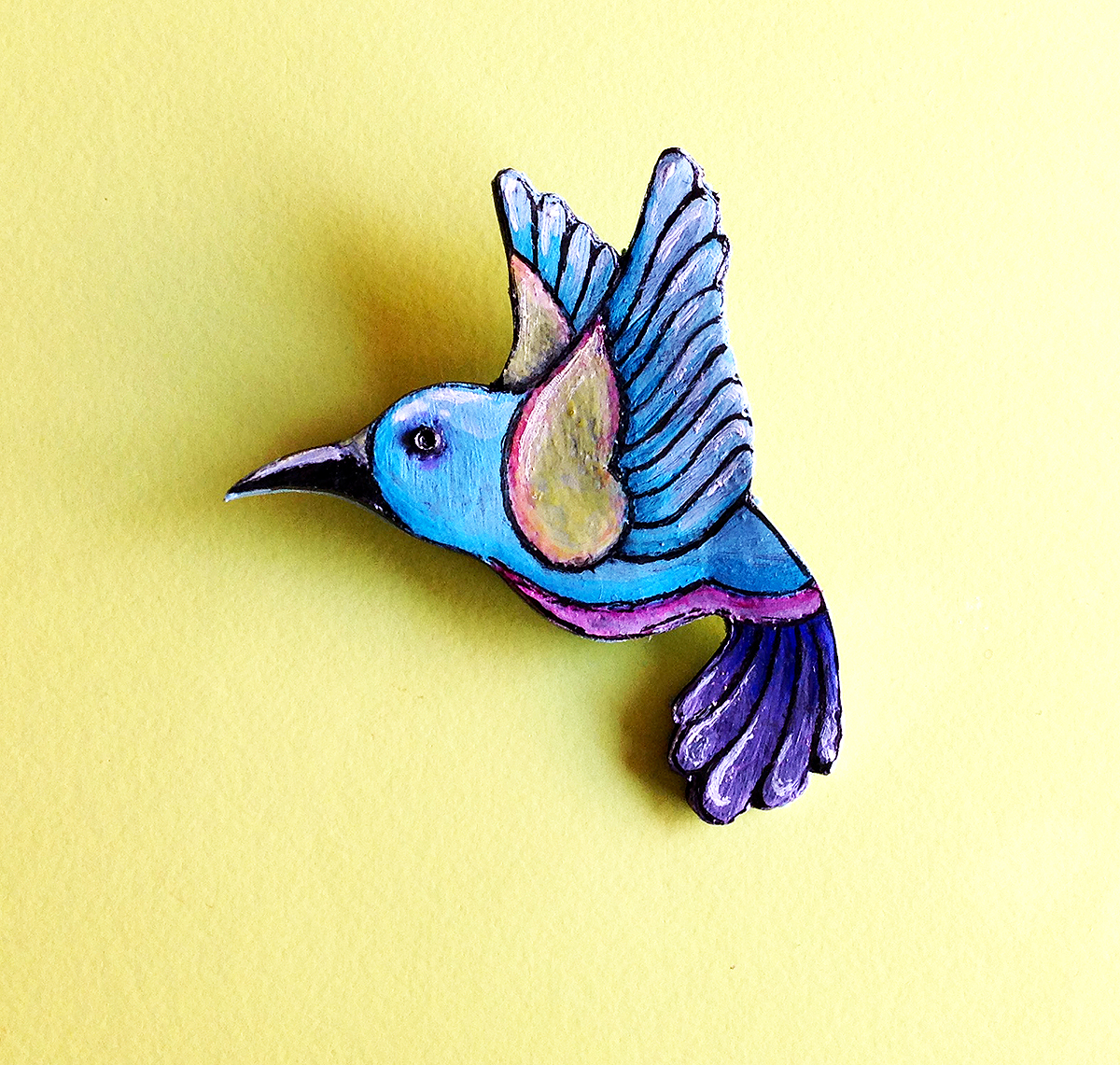 In my Etsy shop you can find these Toucan and Hummingbird brooches. Whether you wear a colorful full circle dress, cardigan in pastel color